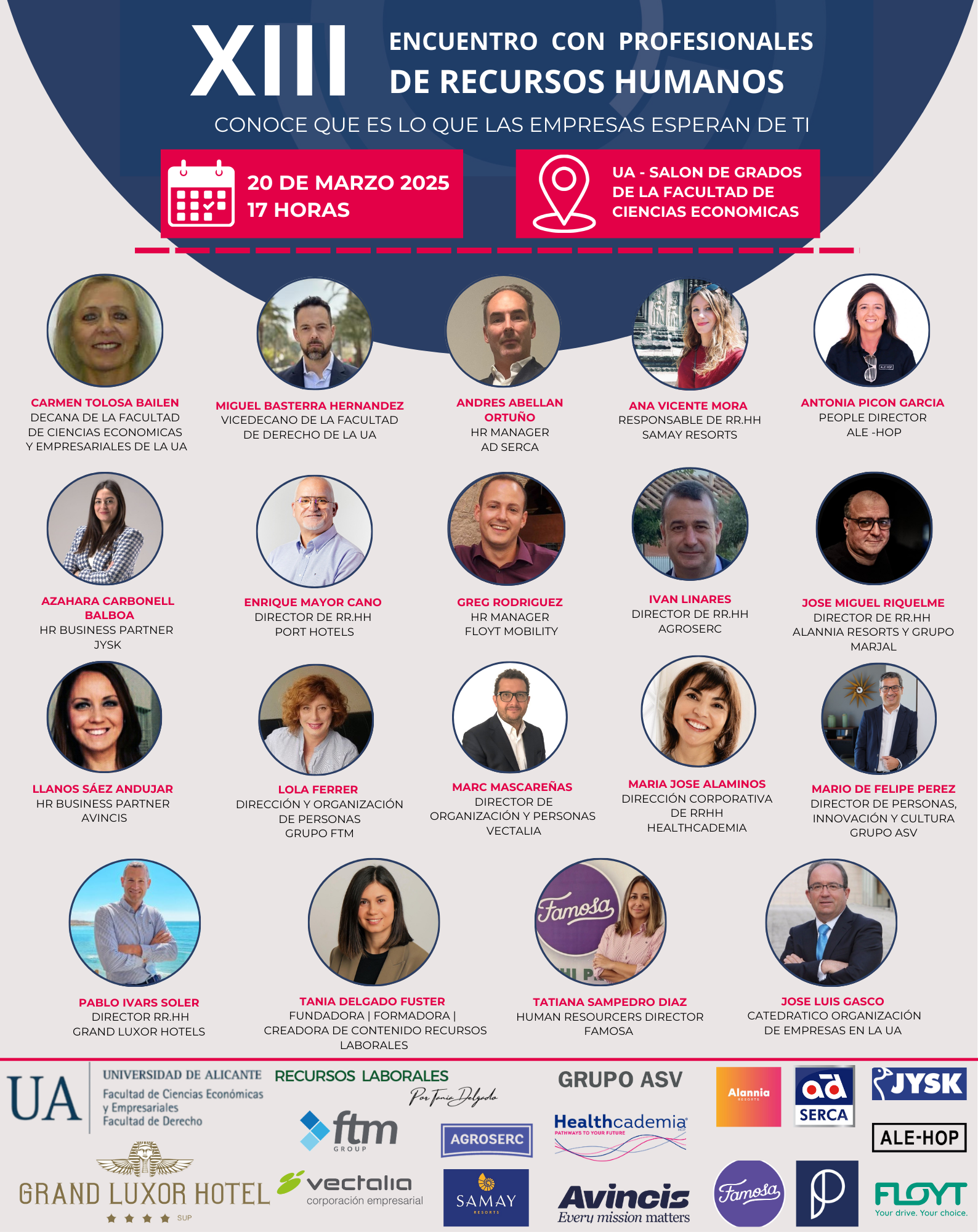 Aquí puedes ver el vídeo completo de la jornada: Streaming completo El próximo jueves 20 de marzo, a las 17:00h, se celebrará en el Salón de Grados de la Facultad de Ciencias Económicas y Empresariales de la Universidad de Alicante el «XIII Encuentro con profesionales de Recursos Humanos, conoce lo […]